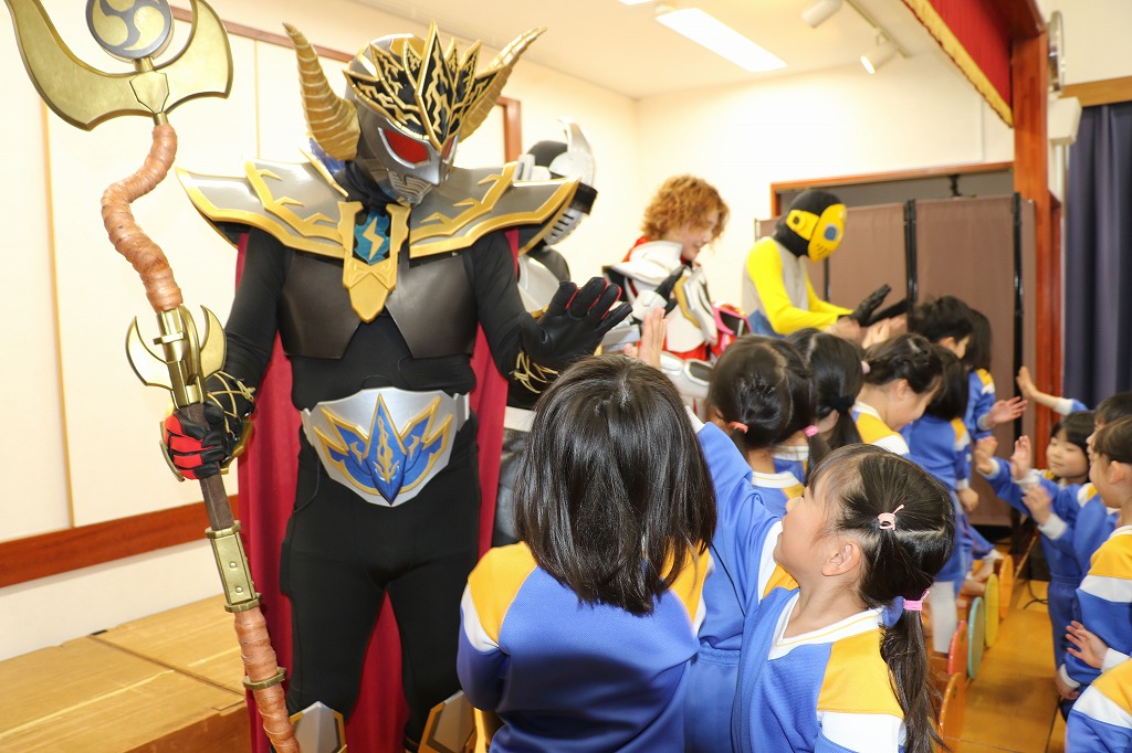 3月のお誕生会に、ご当地ヒーロー「きときと戦士 キットムーン」の皆様が来て下さいました。