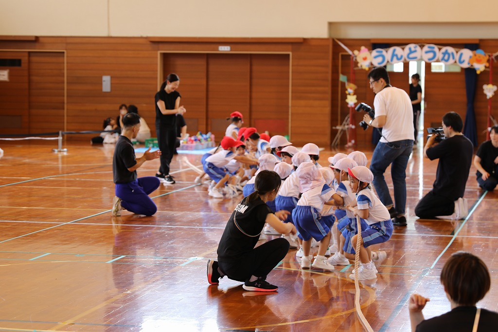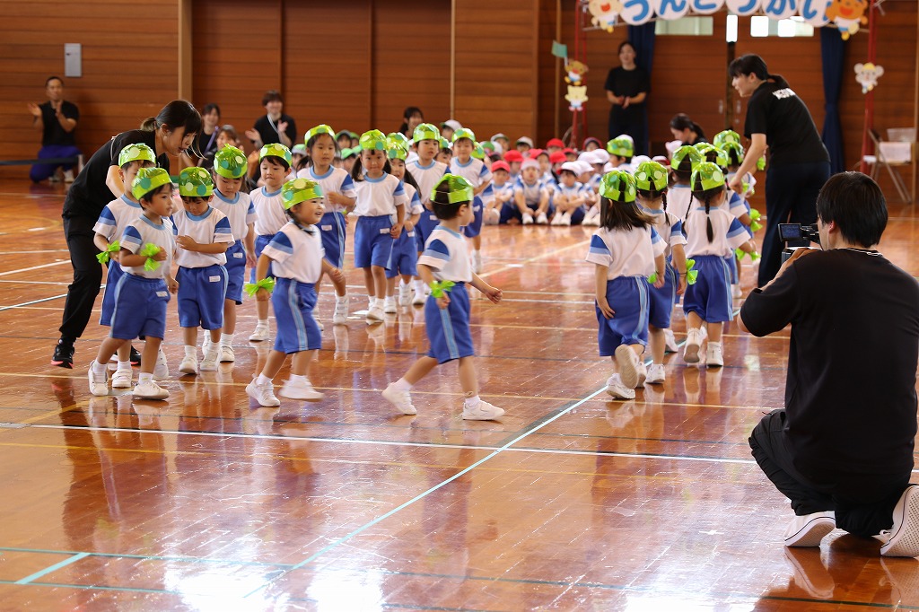 年少組さん「ビターバカンス」の曲に合わせて、リズム発表をしました。練習の時からとても可愛らしかったです。