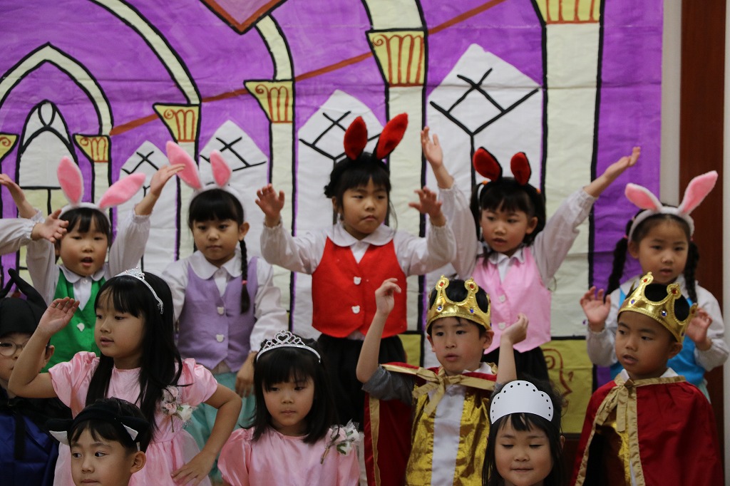 年長組さんは、みんなでアイデアを出しながら創り上げていきました。最後に、たくさんの拍手をいただき、幼稚園生活の良い思い出の一つとなったことでしょう。