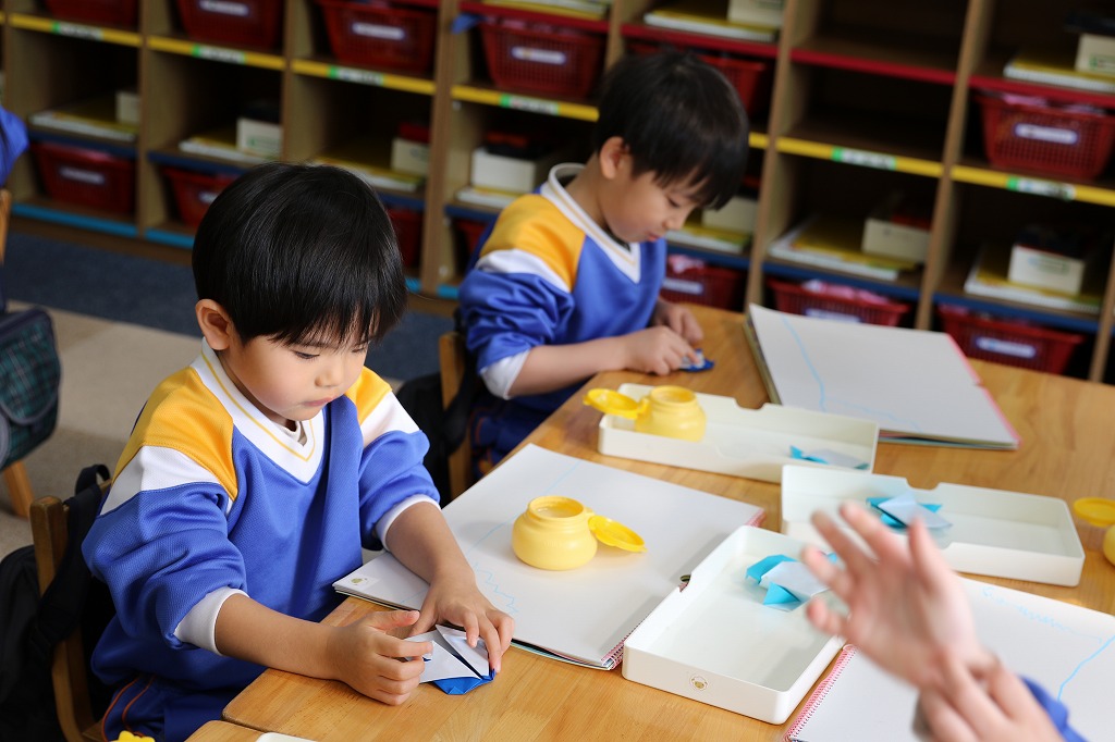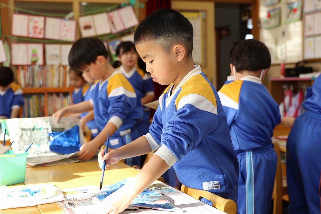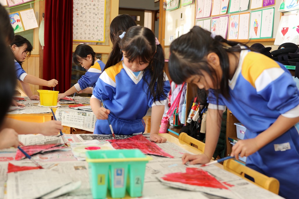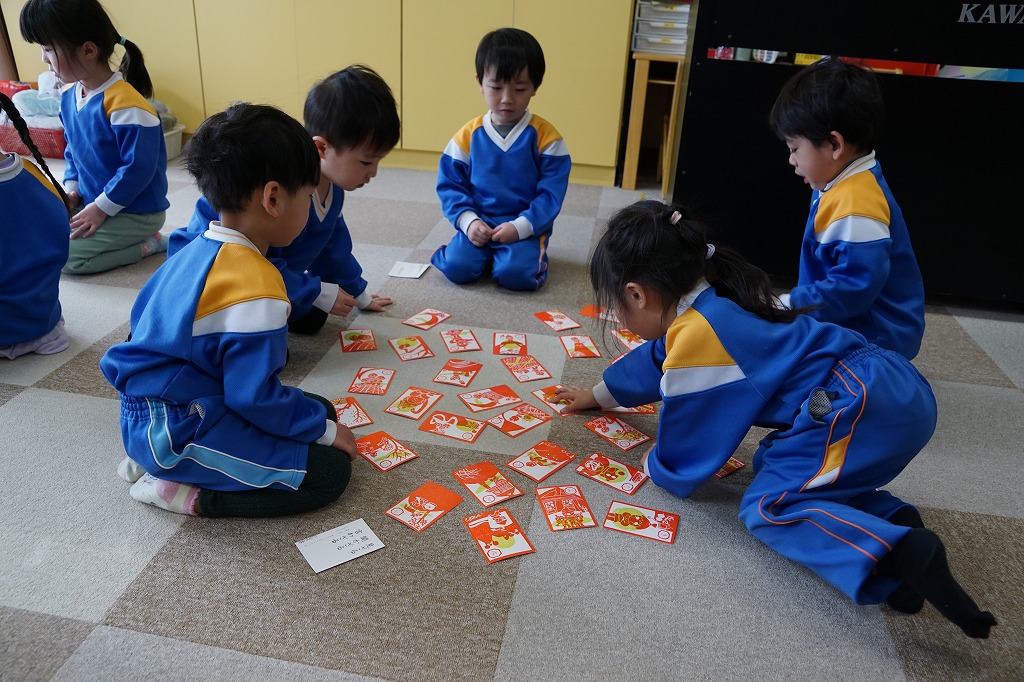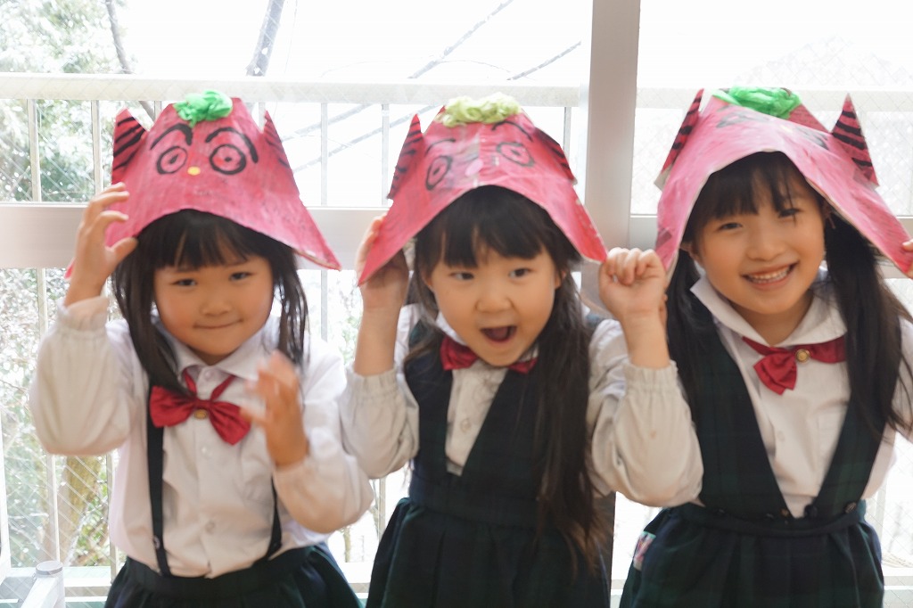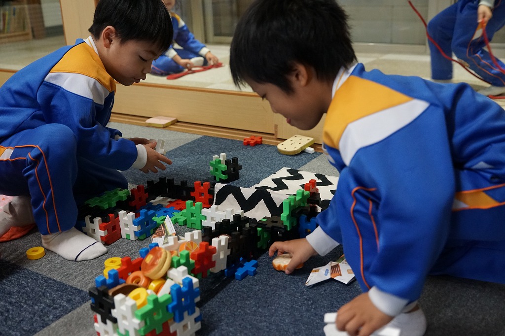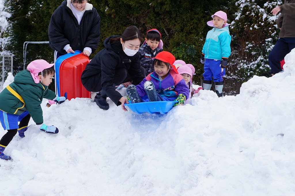 グランドに大きな雪山が出来ました。雪の晴れ間に雪遊びをしました。